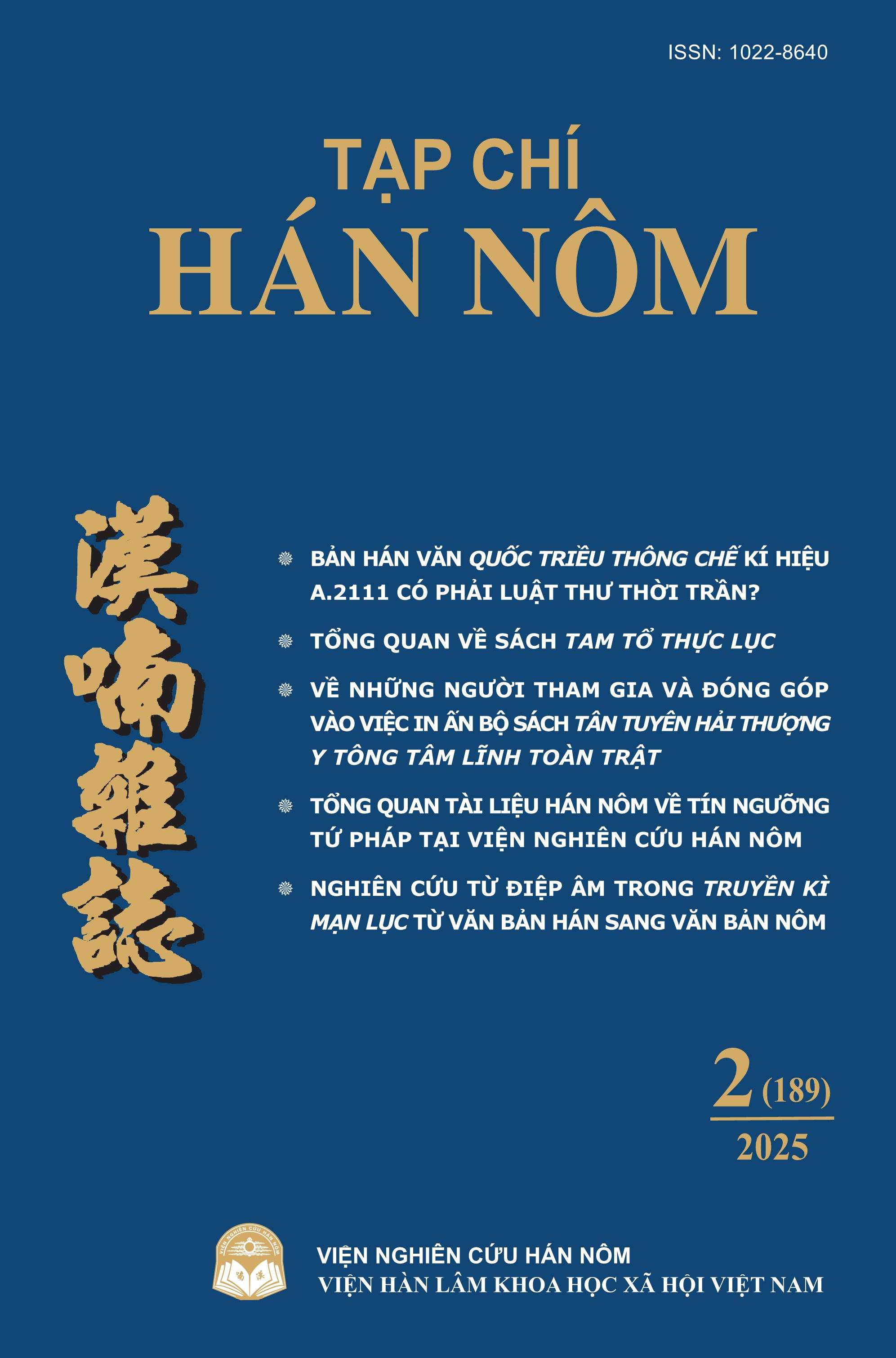 TẠP CHÍ HÁN NÔM, số 2 ( 189 ) 2025