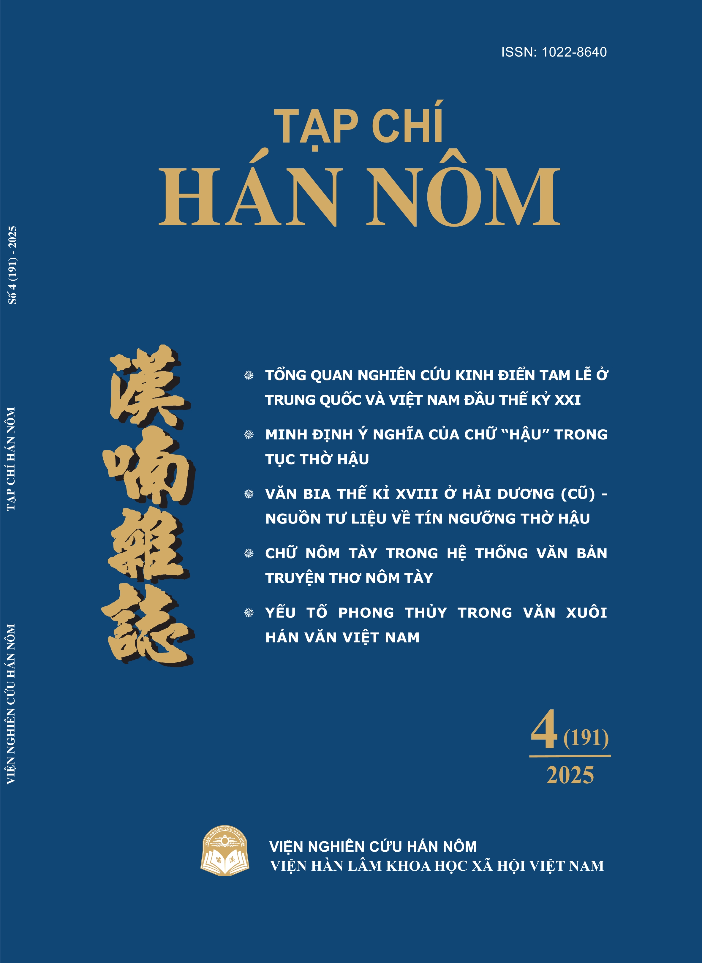 TẠP CHÍ HÁN NÔM SỐ 4 (191) 2025