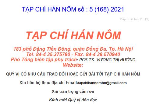 MỤC LỤC TẠP CHÍ HÁN NÔM, số 5 ( 168 ) 2021
